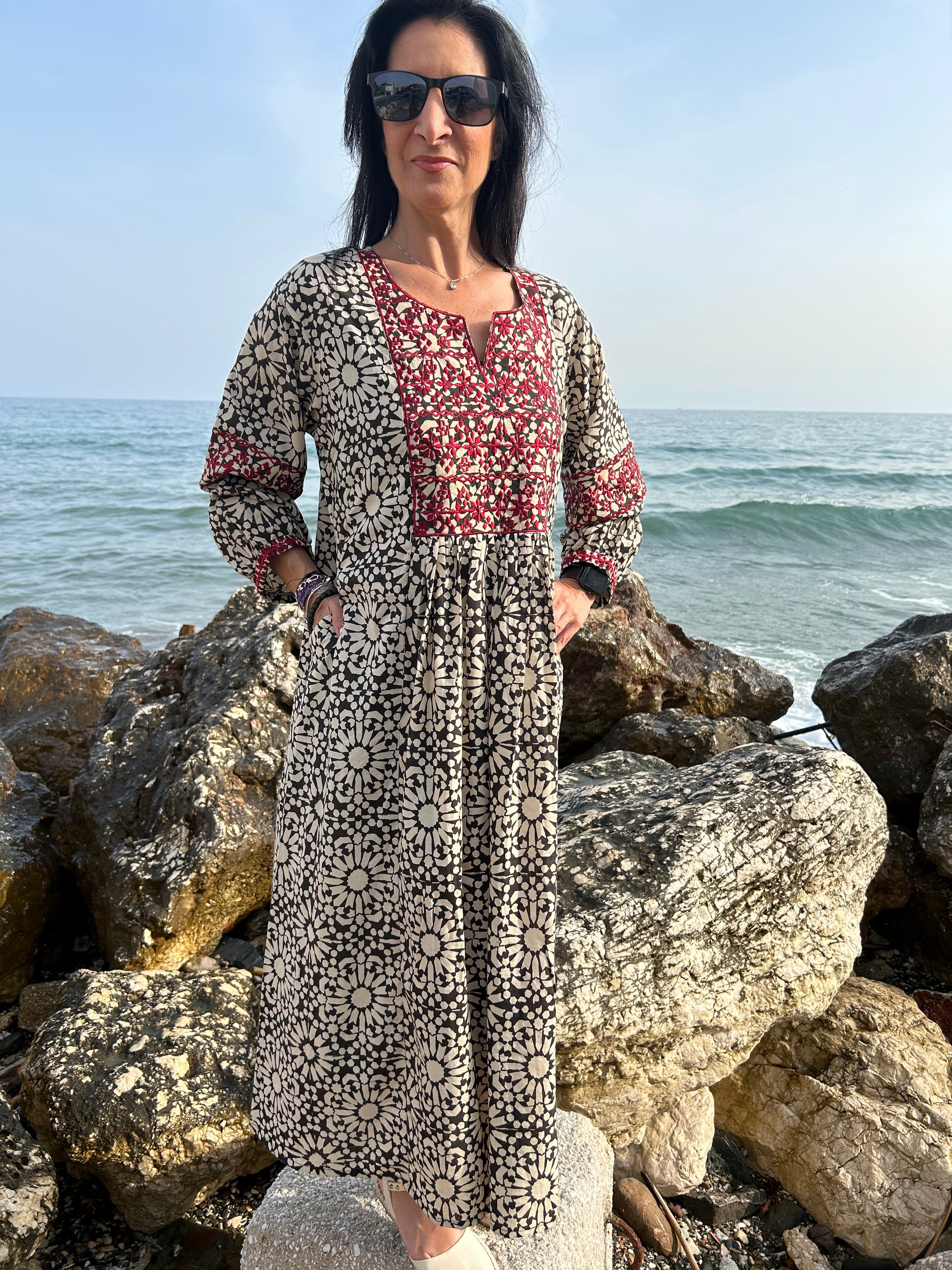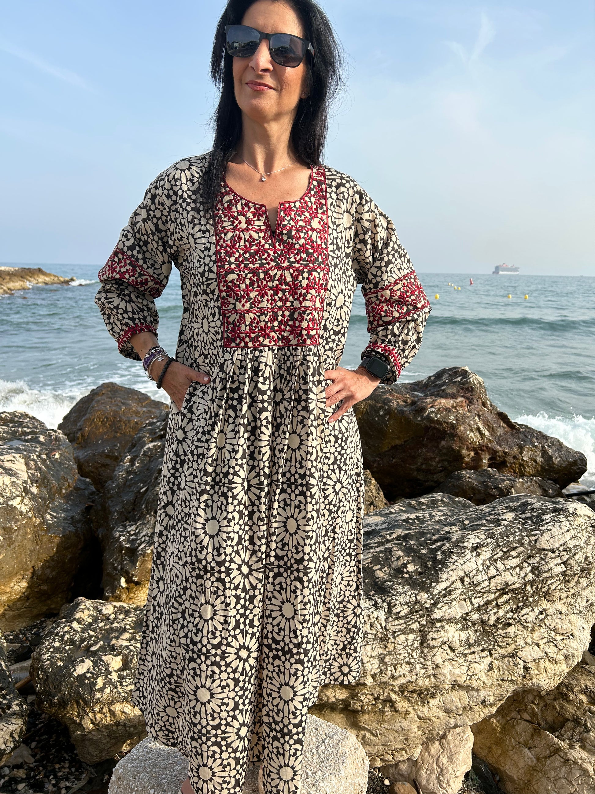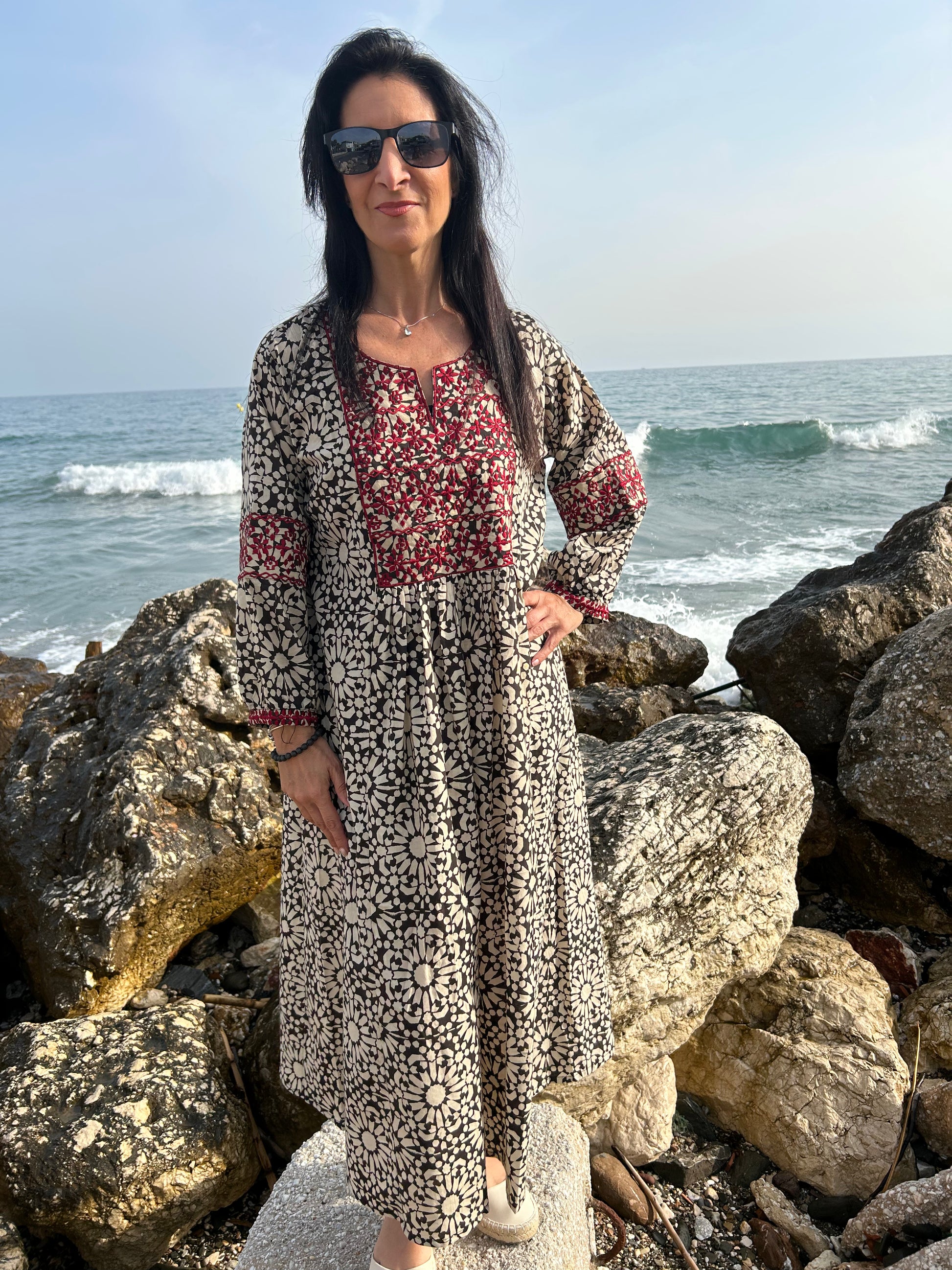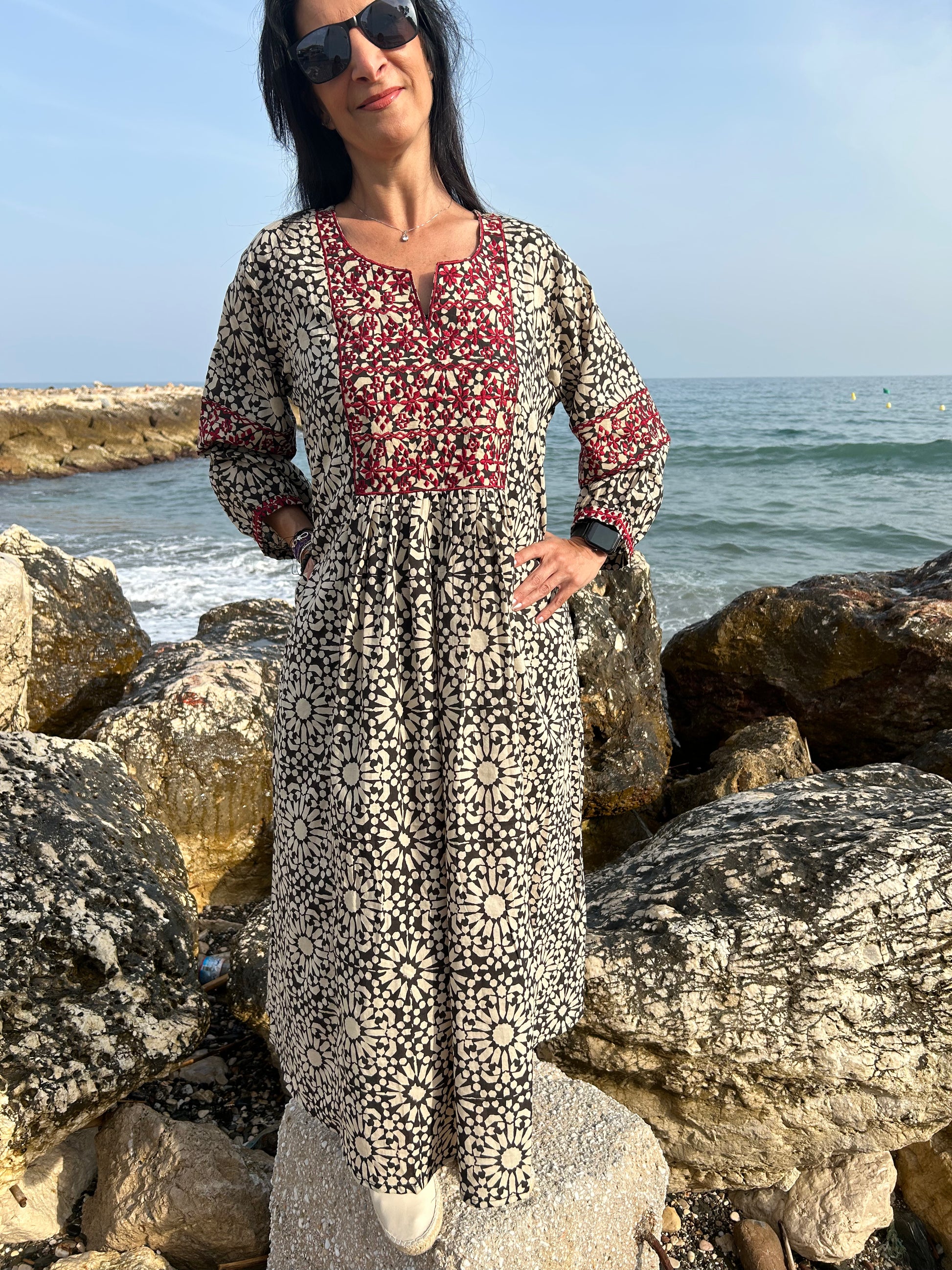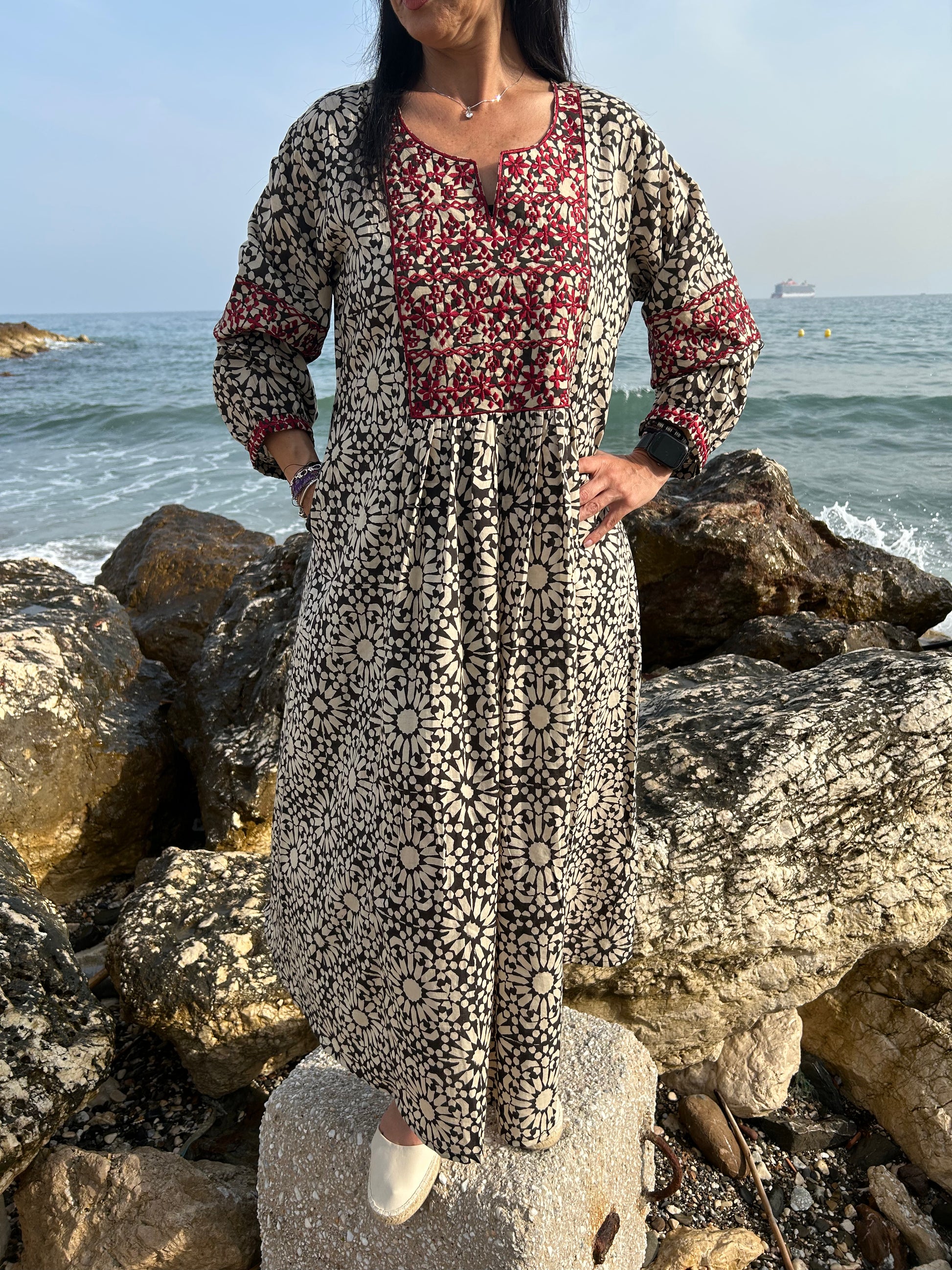 Black embroidered dress