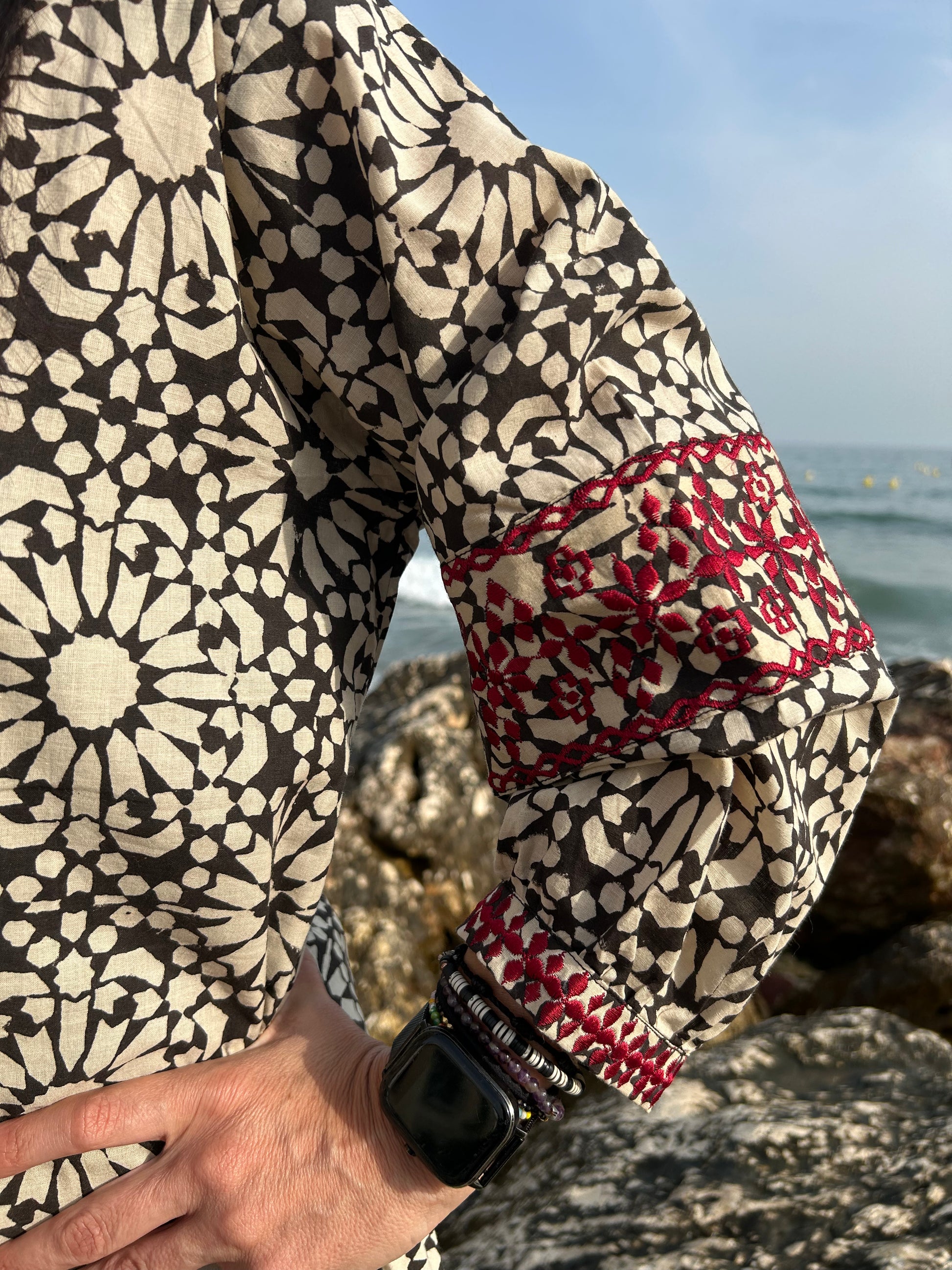 It is beautifully painted on with blocks- a traditional Indian style of printing.Each layered block by block,colour by colour, creating an exquisite design.