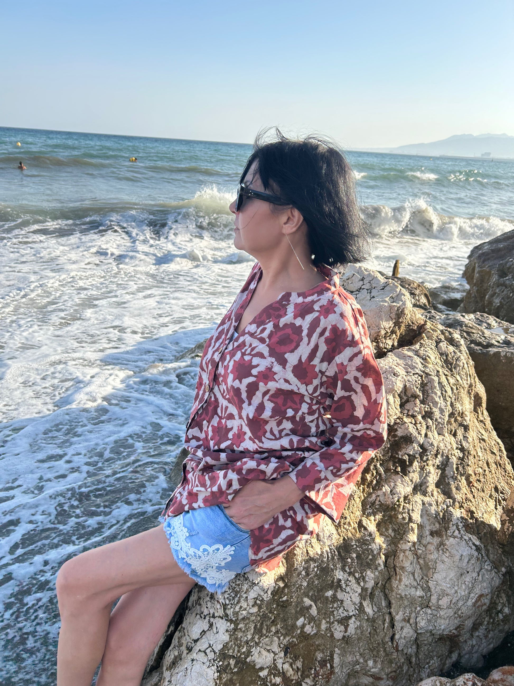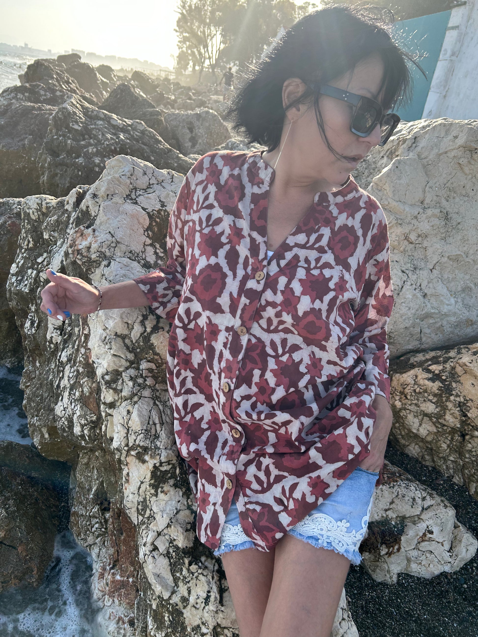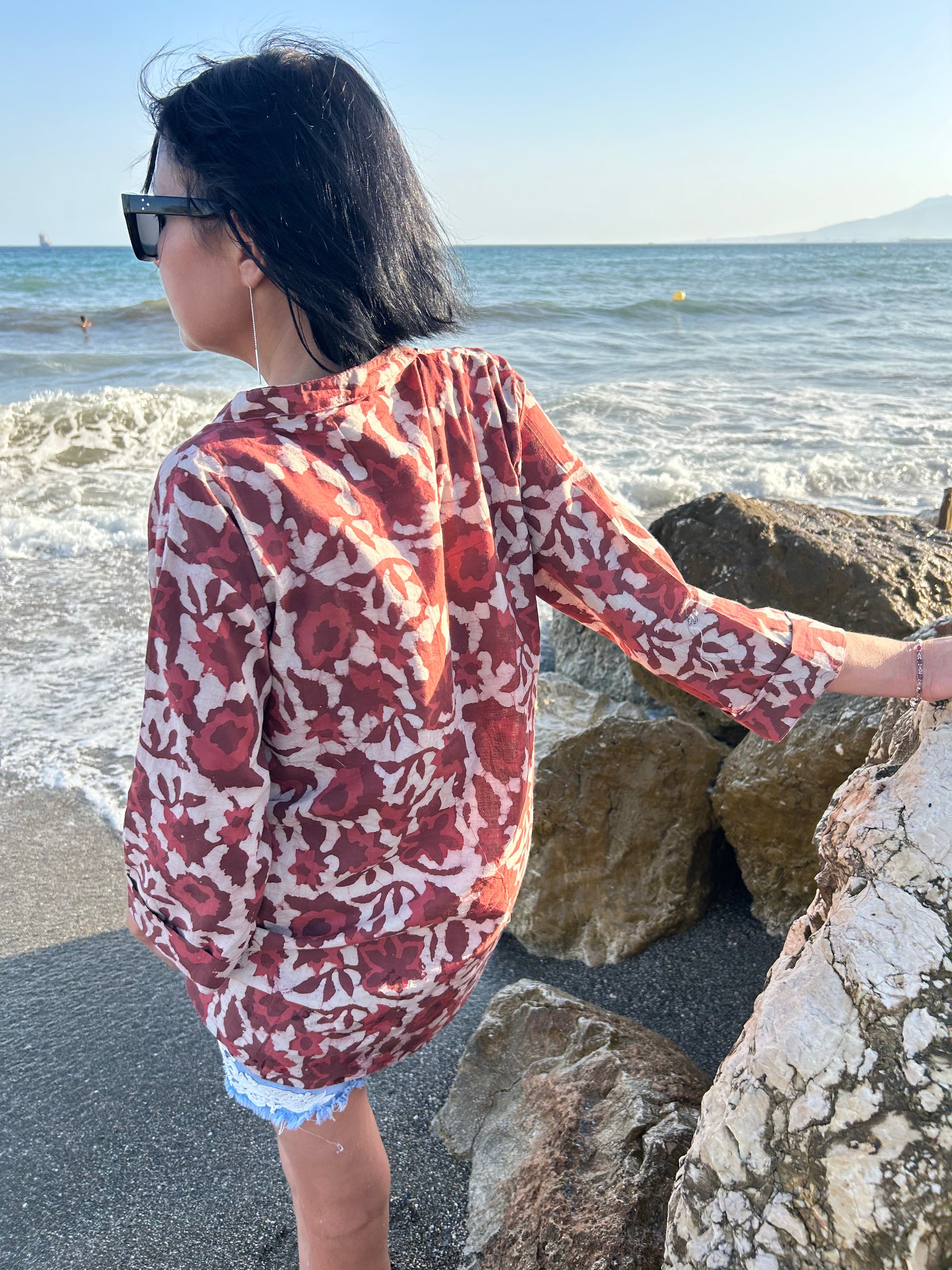 It is beautifully painted on with blocks- a traditional Indian style of printing.Each layered block by block,colour by colour, creating an exquisite design.
