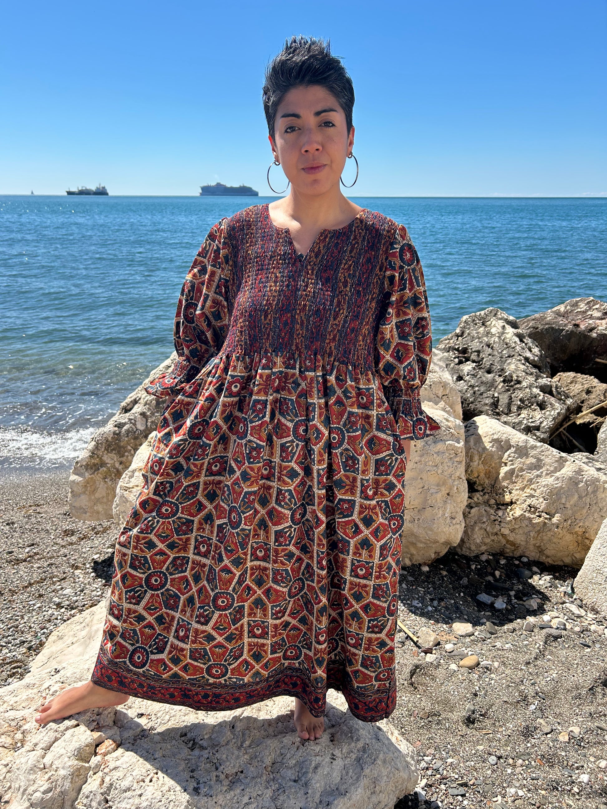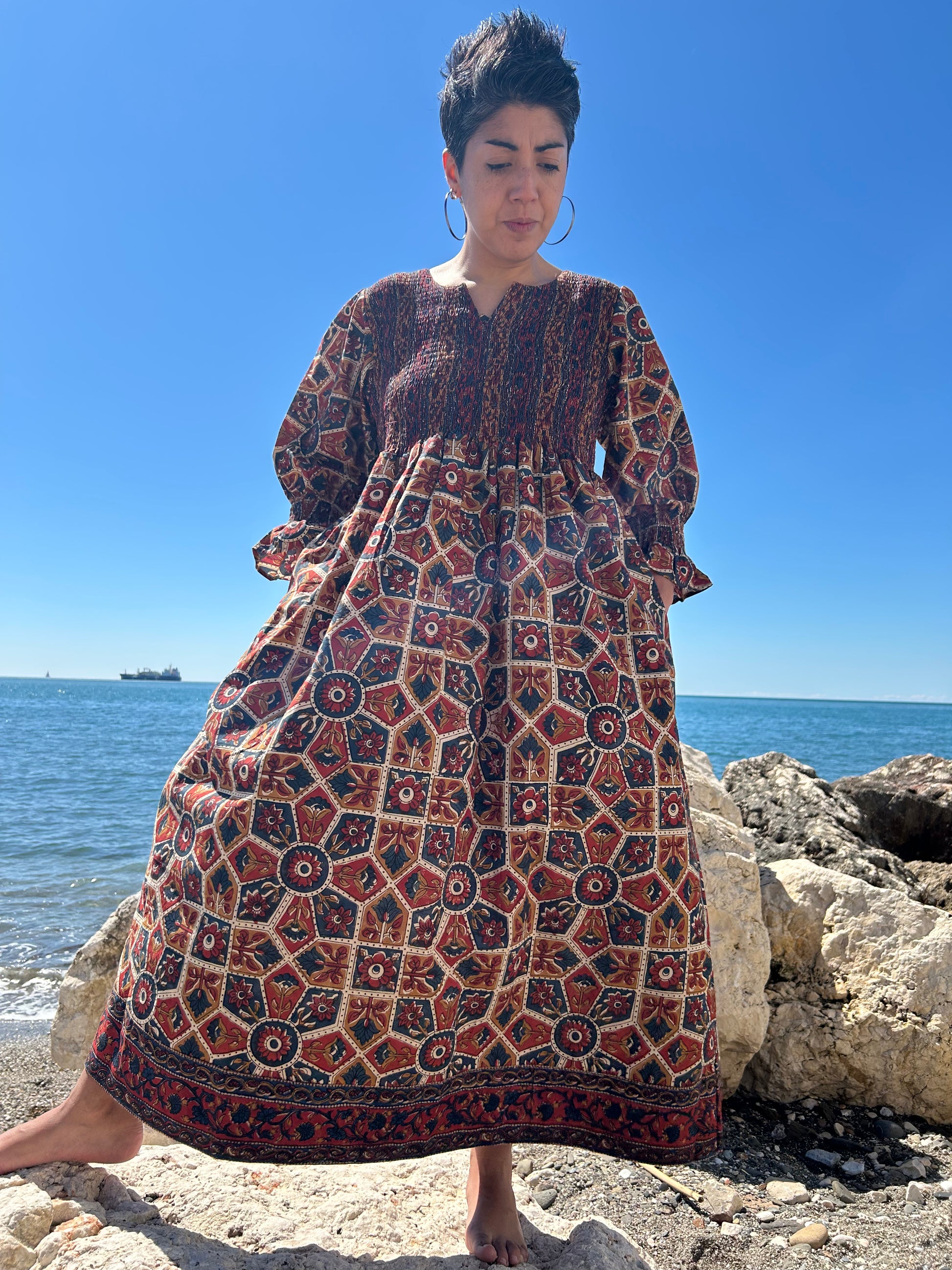 It is beautifully painted on with blocks- a traditional Indian style of printing.Each layered block by block,colour by colour, creating an exquisite design.