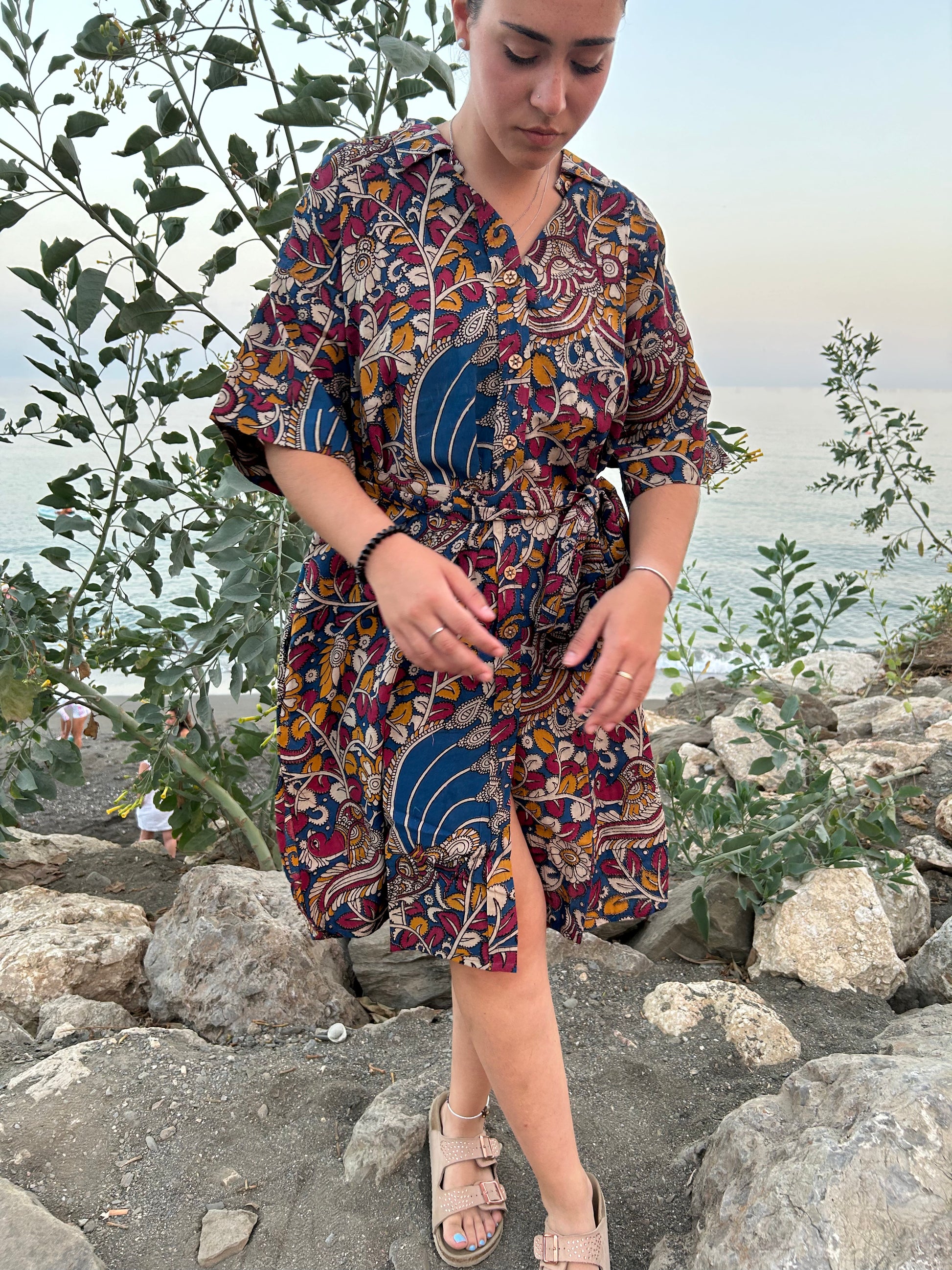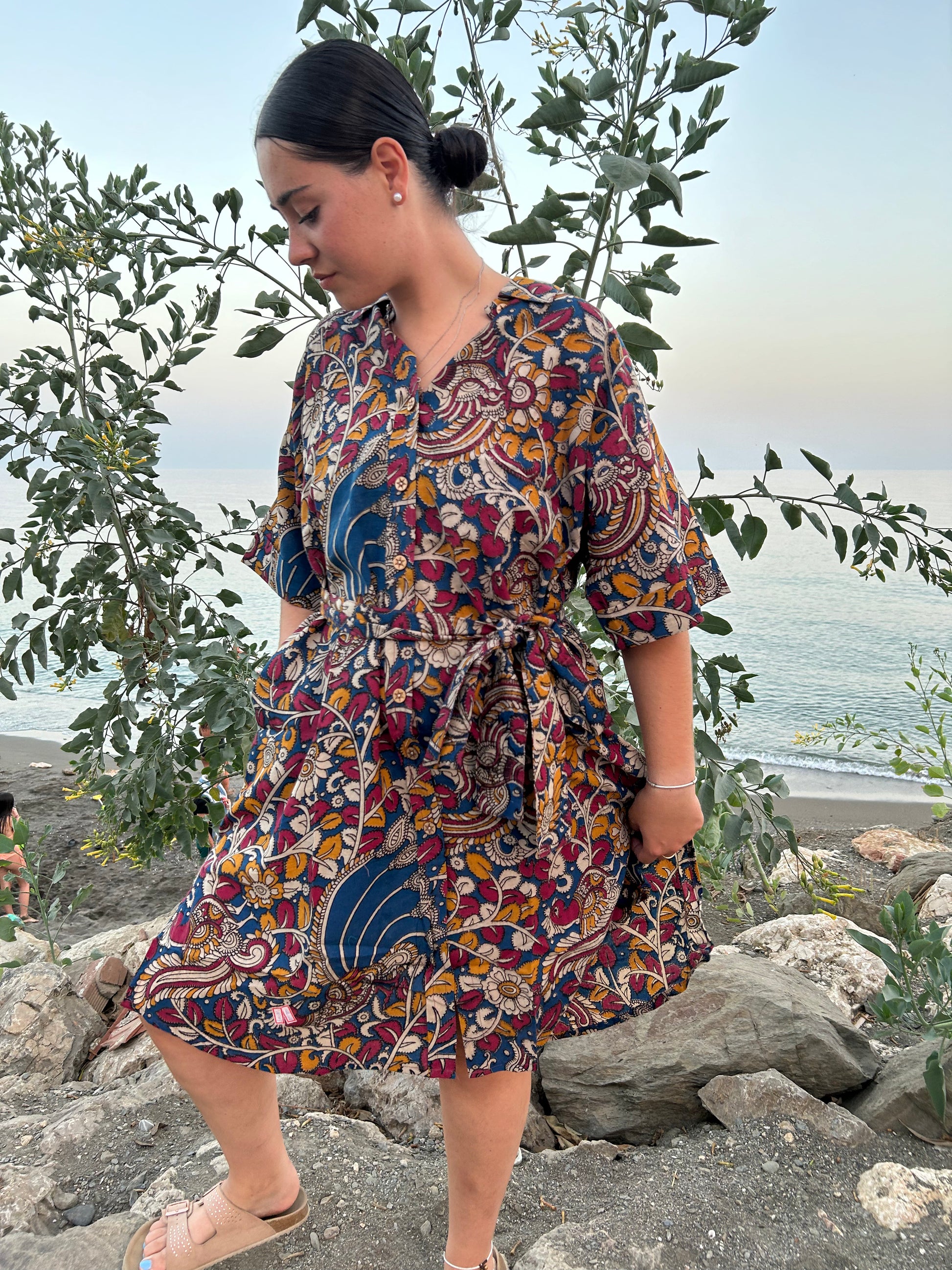 It is beautifully painted on with blocks- a traditional Indian style of printing.Each layered block by block,colour by colour, creating an exquisite design.