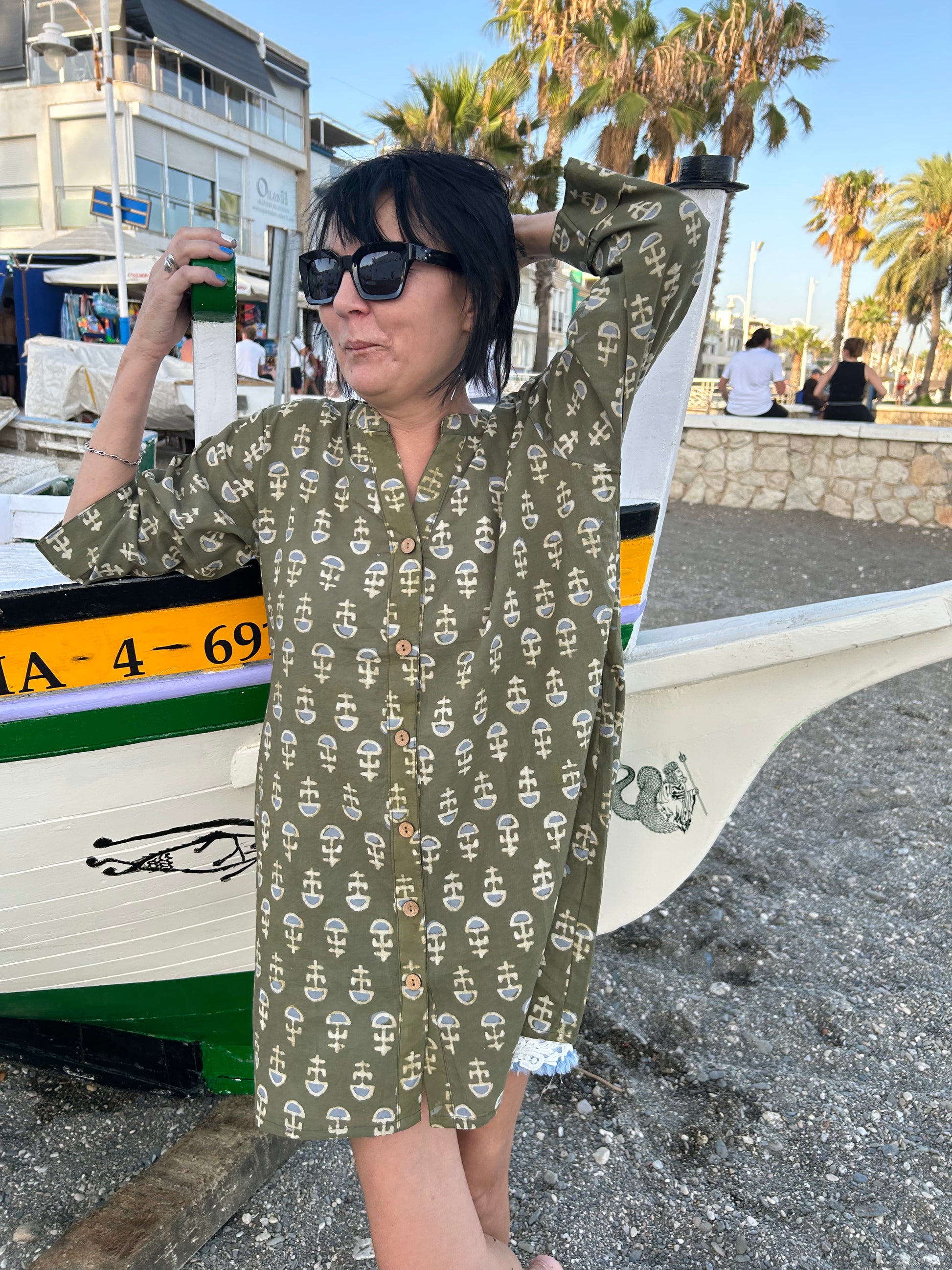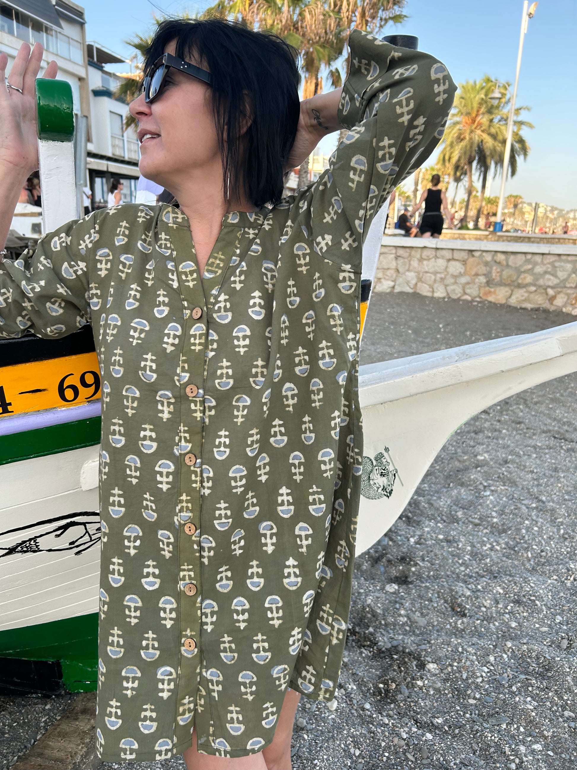 Green floral button down cotton shirt
