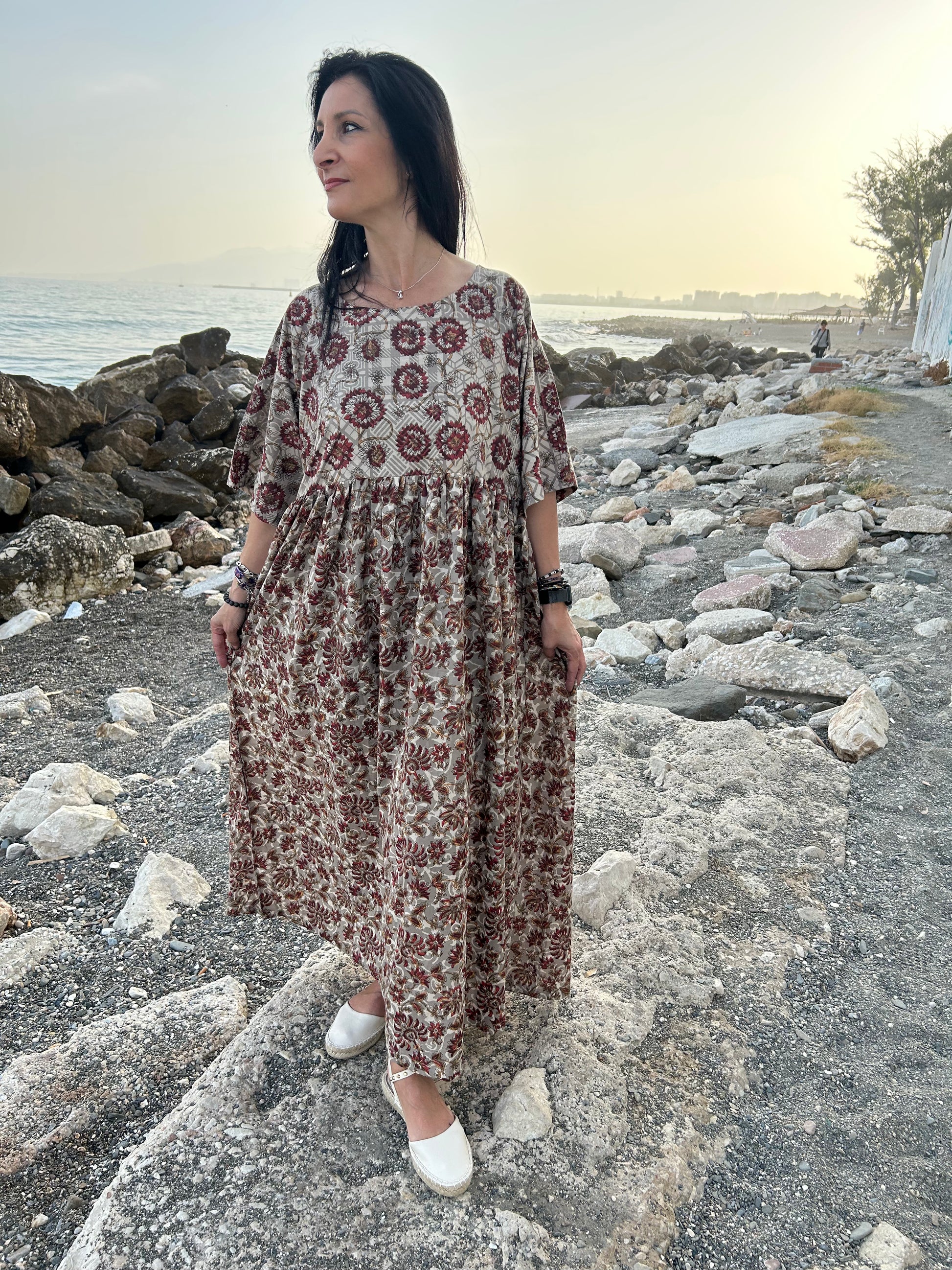 Handmade Beige cotton dress