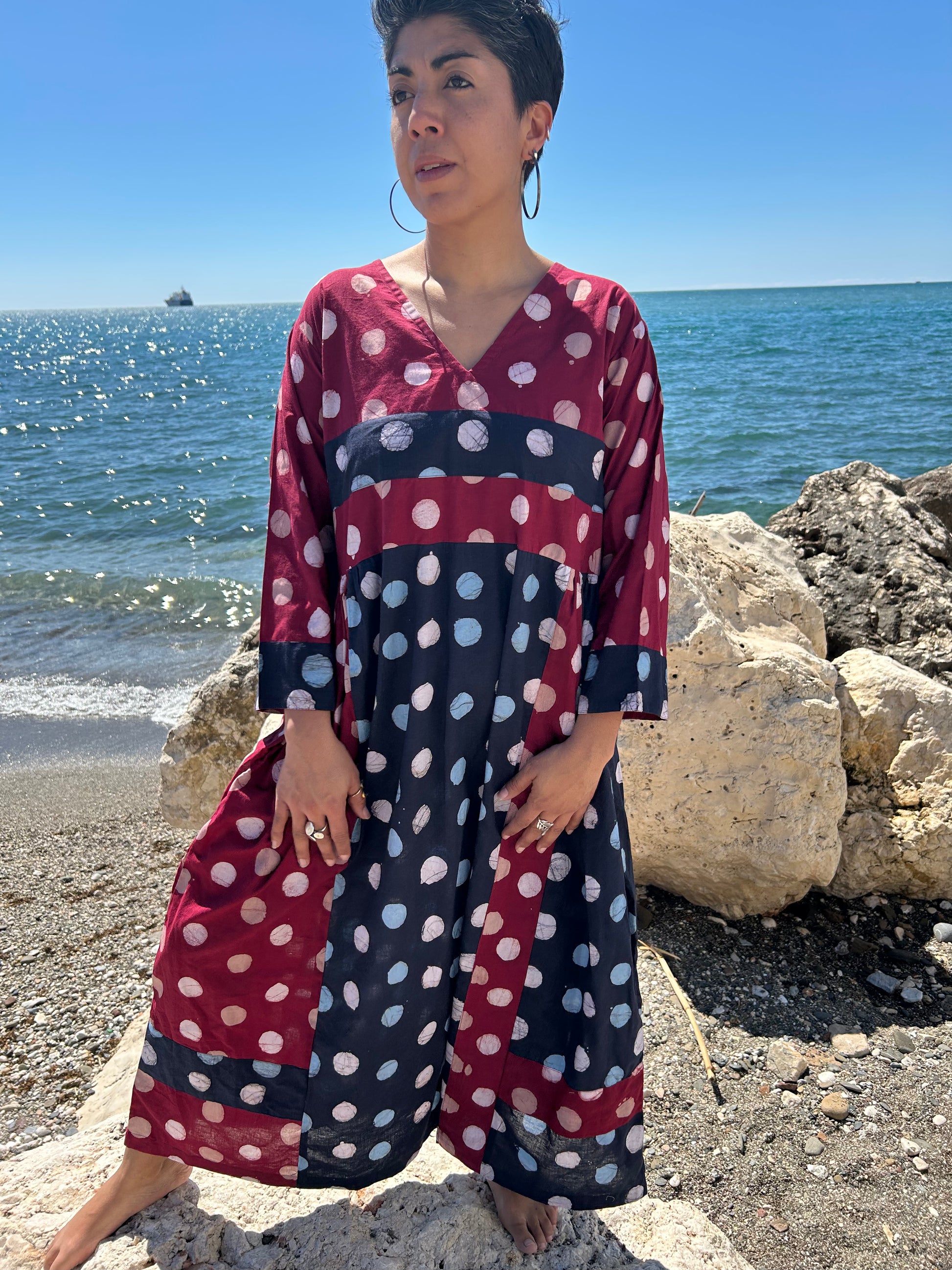It is beautifully painted on with blocks- a traditional Indian style of printing.Each layered block by block,colour by colour, creating an exquisite design.