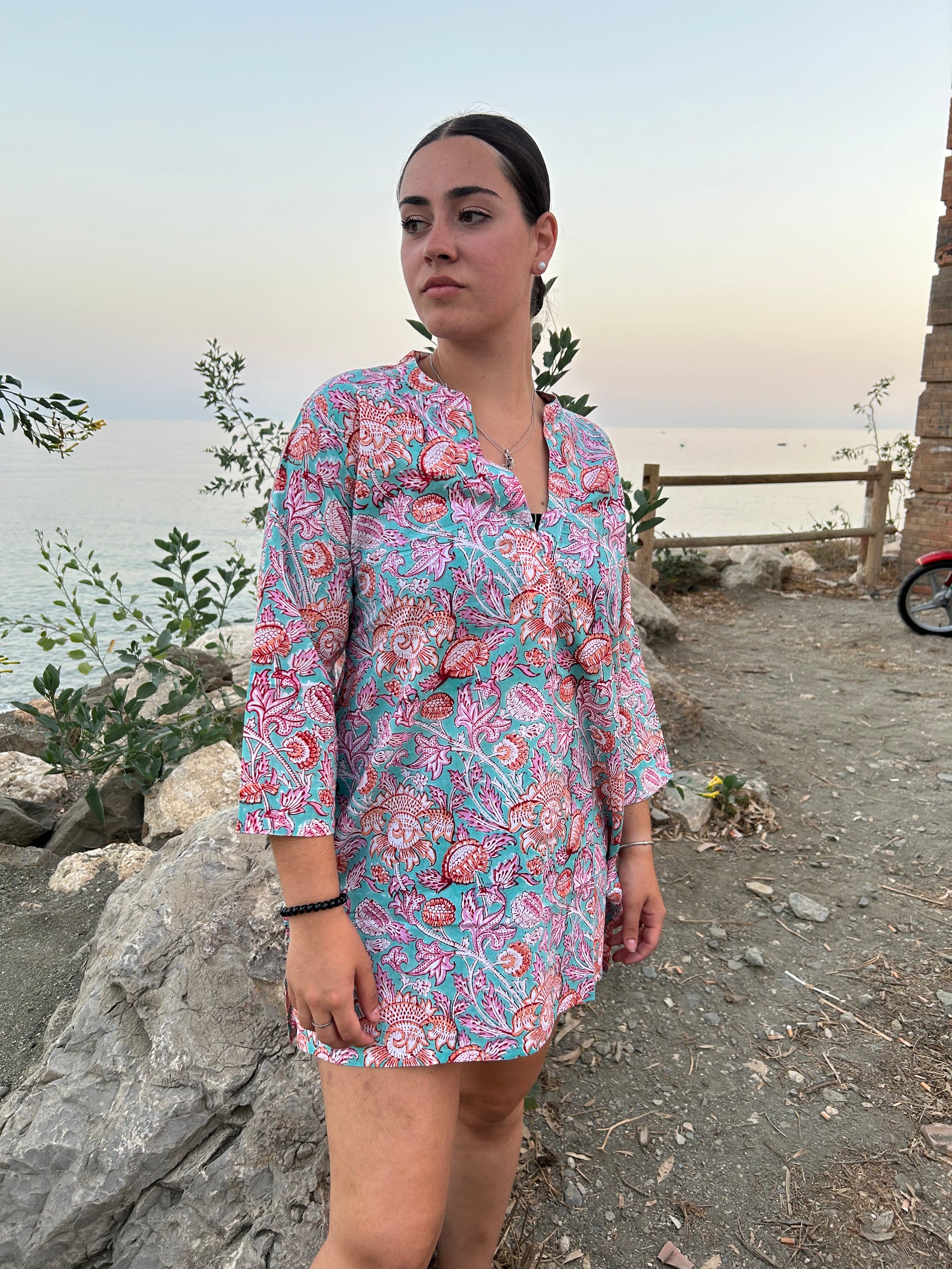 It is beautifully painted on with blocks- a traditional Indian style of printing.Each layered block by block,colour by colour, creating an exquisite design.