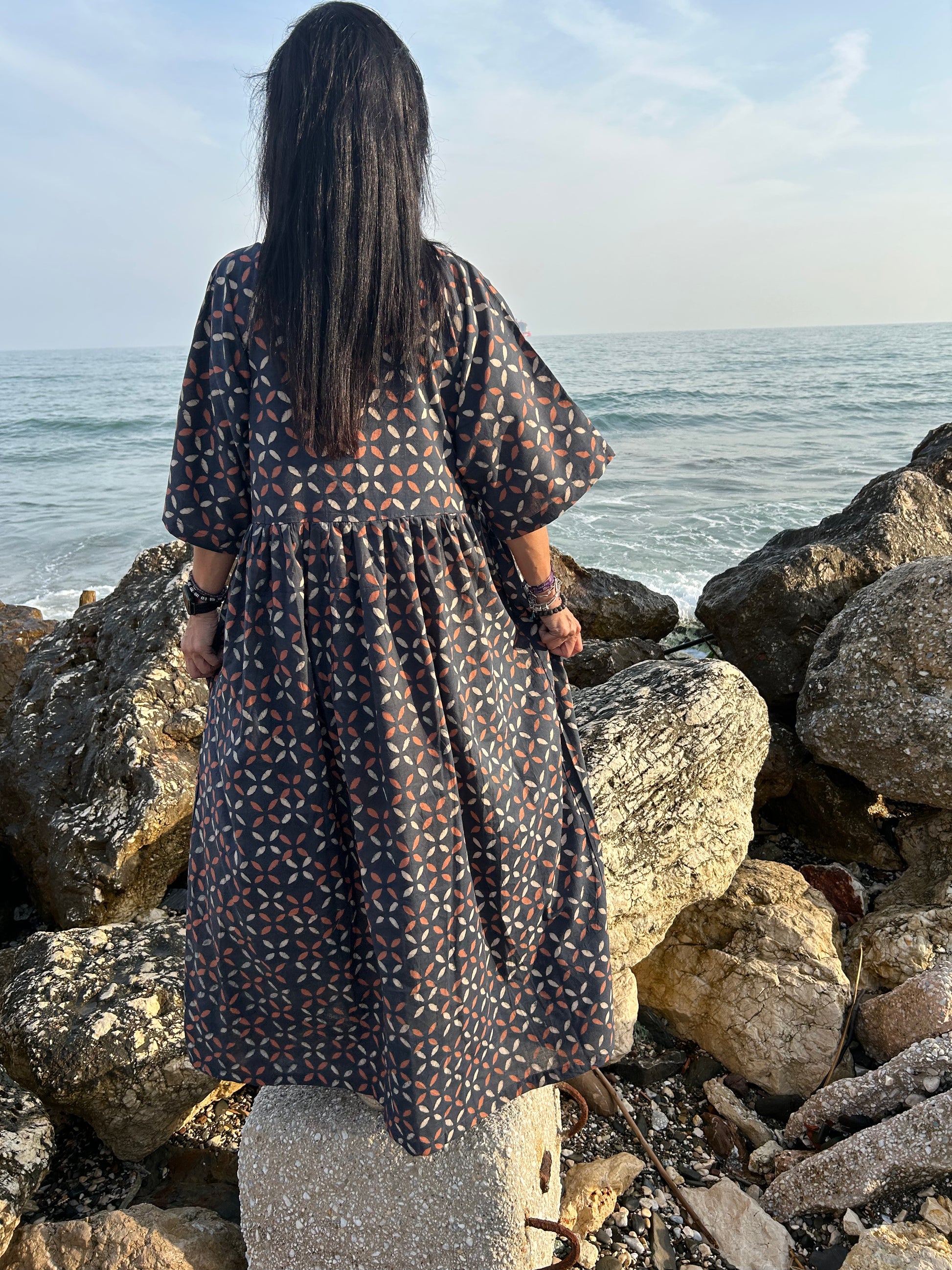 It is beautifully painted on with blocks- a traditional Indian style of printing.Each layered block by block,colour by colour, creating an exquisite design.