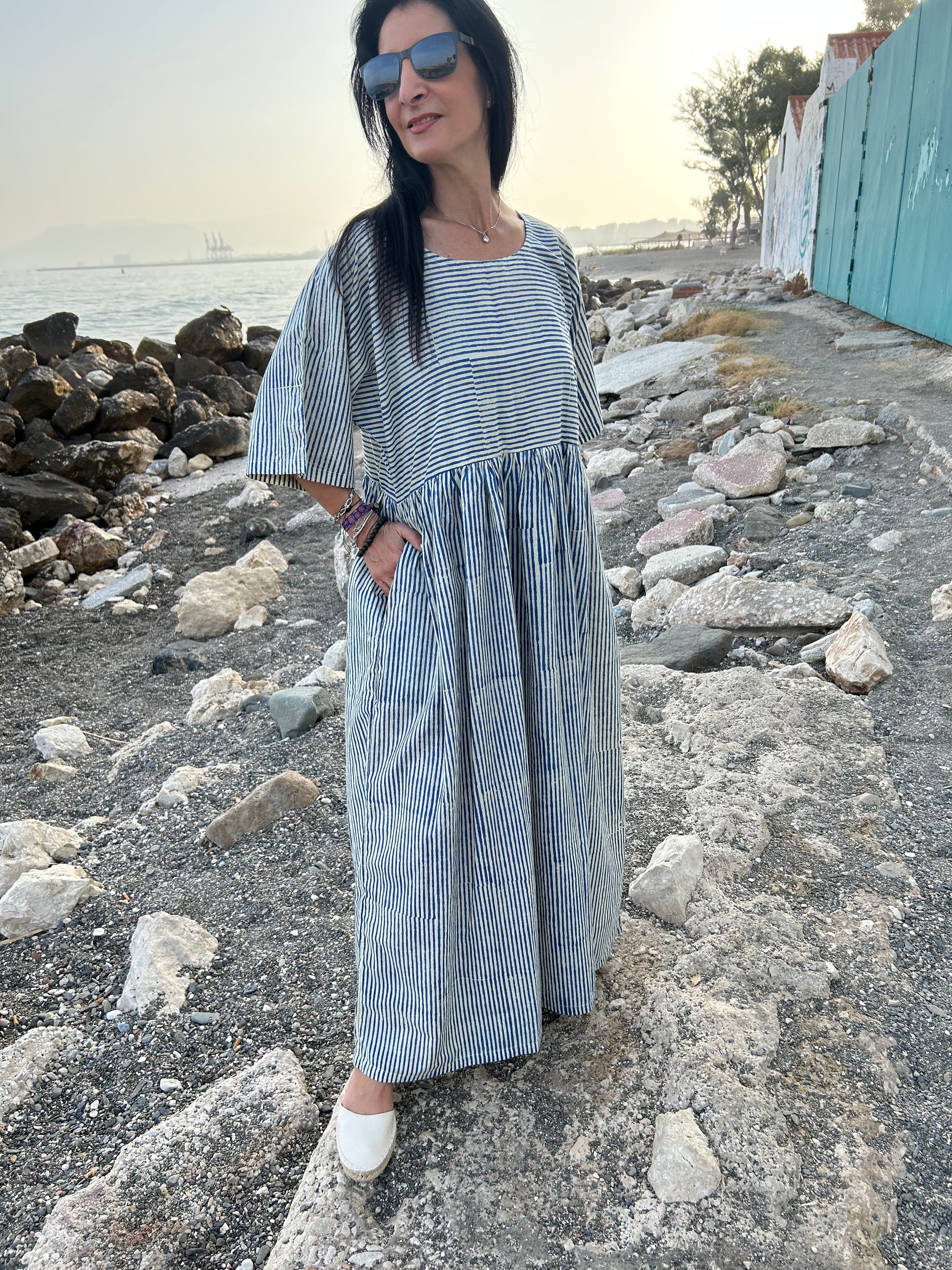 It is beautifully painted on with blocks- a traditional Indian style of printing.Each layered block by block,colour by colour, creating an exquisite design.