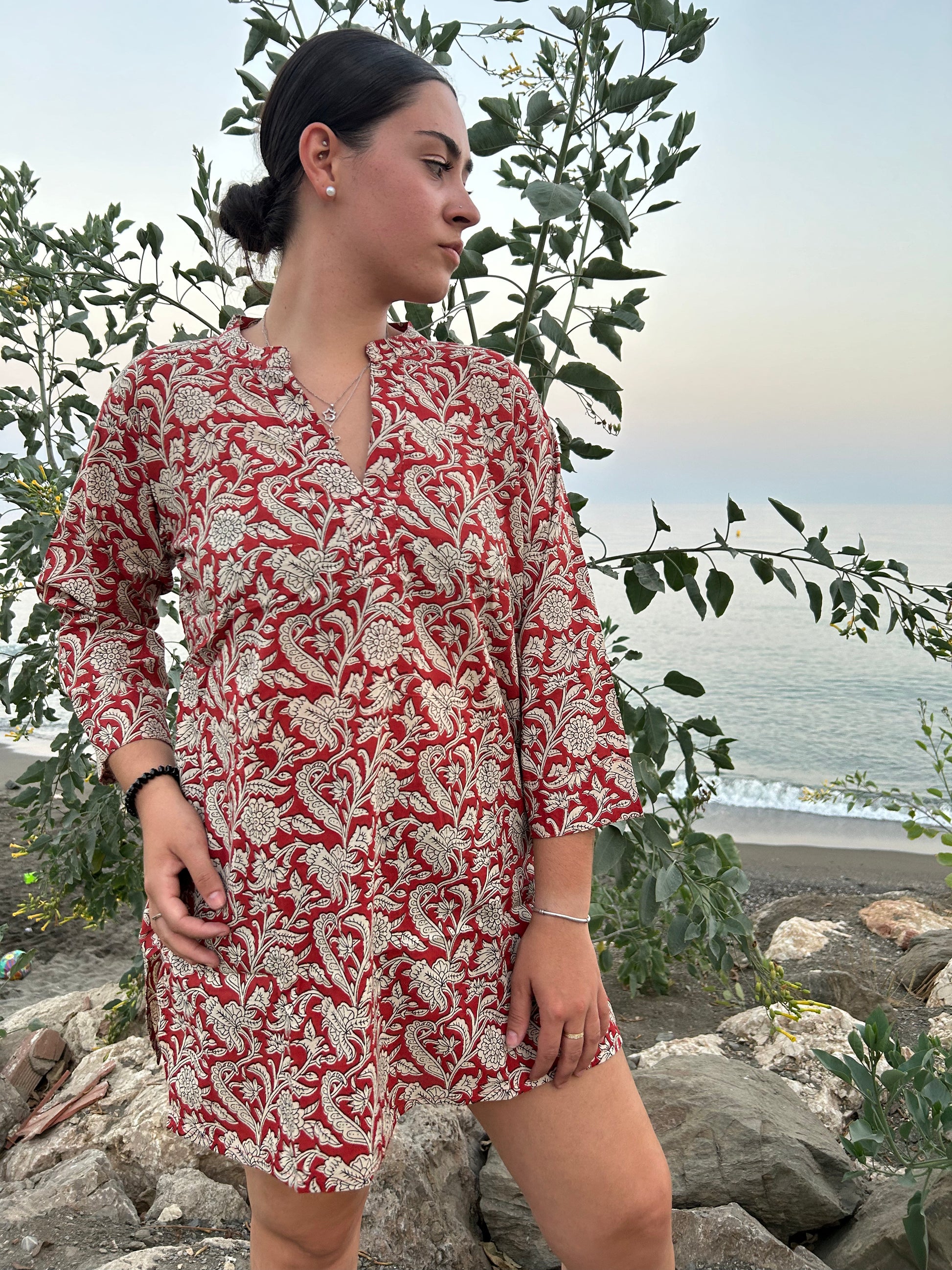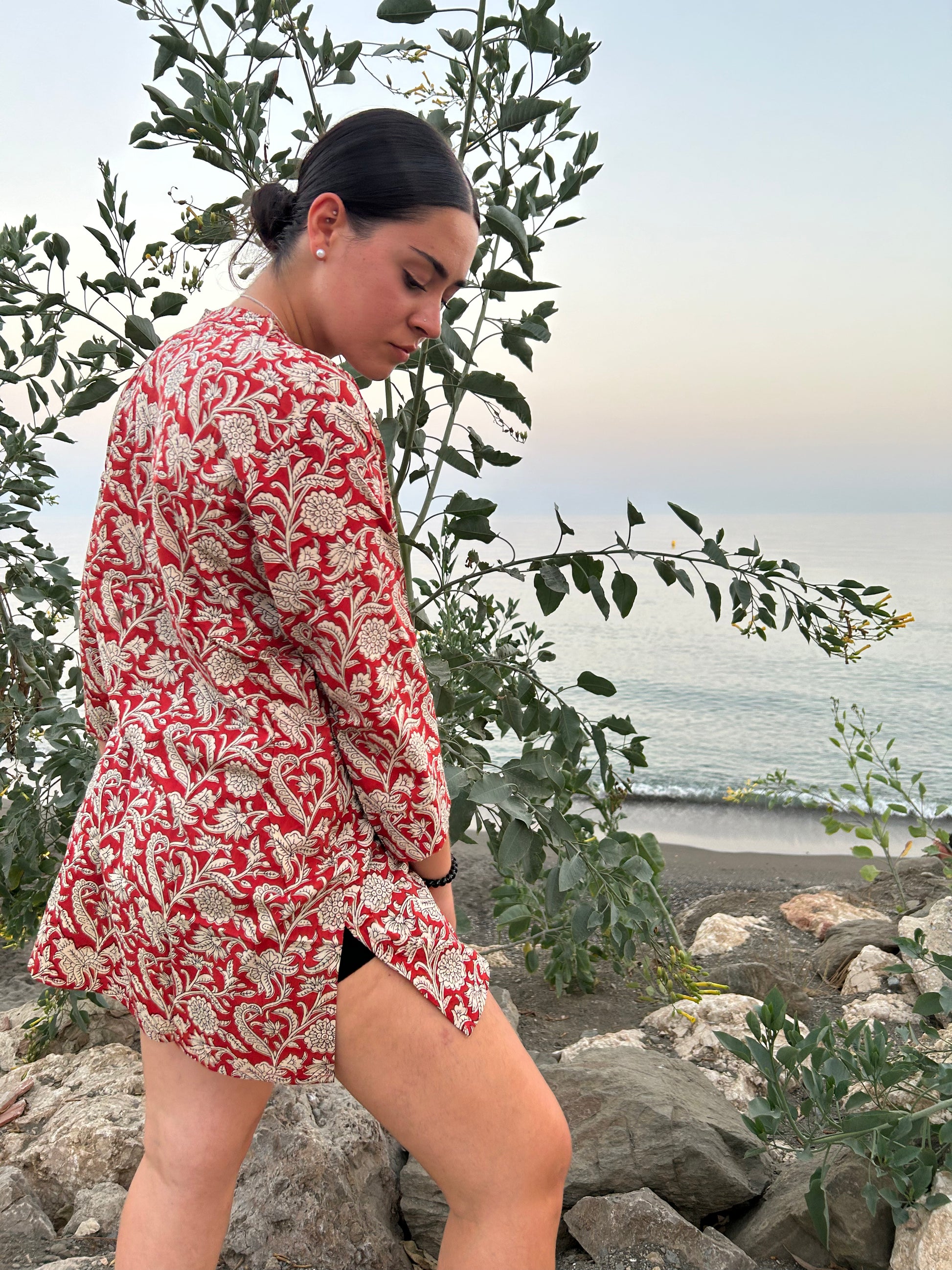 It is beautifully painted on with blocks- a traditional Indian style of printing.Each layered block by block,colour by colour, creating an exquisite design.