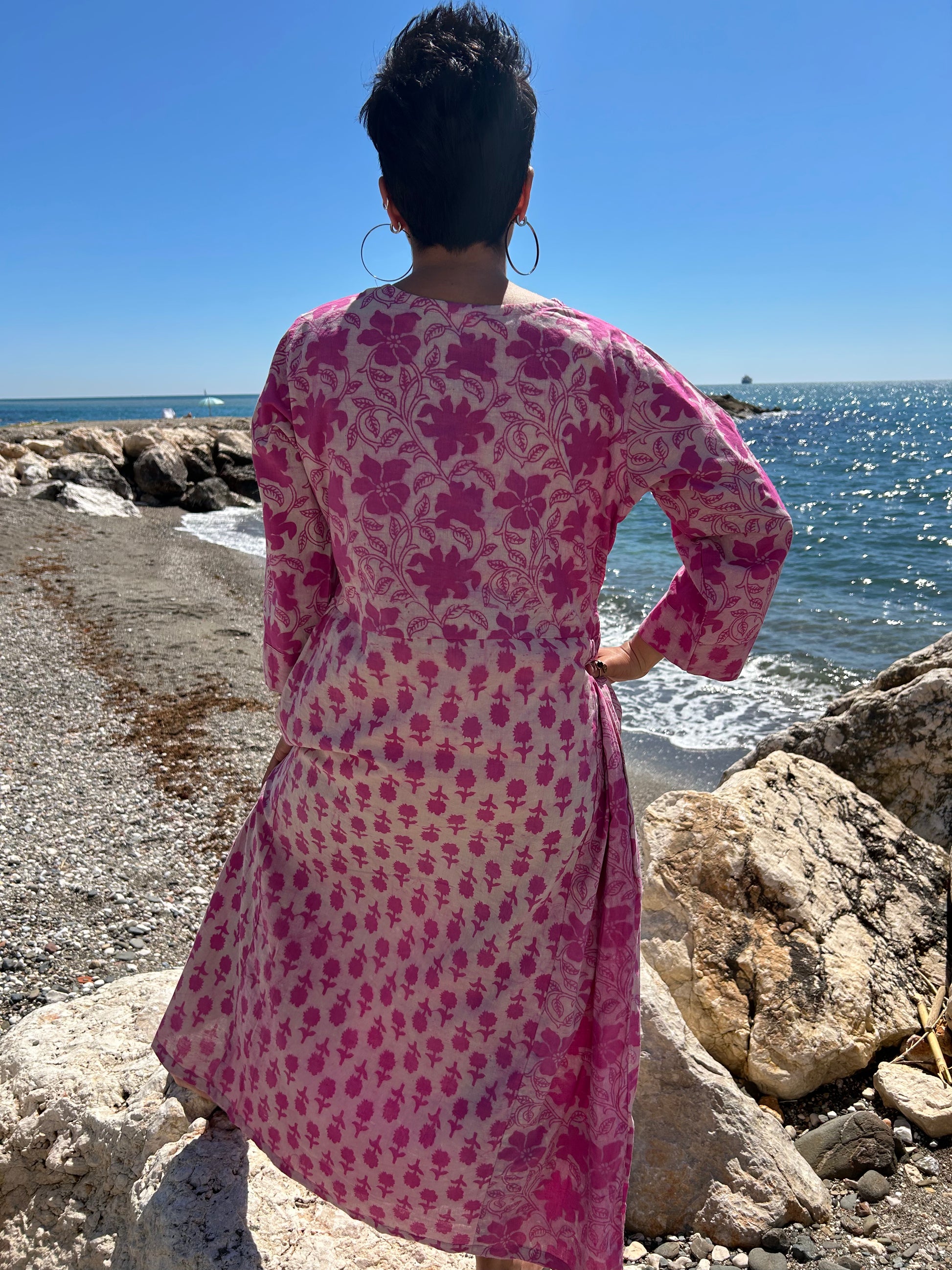 It is beautifully painted on with blocks- a traditional Indian style of printing.Each layered block by block,colour by colour, creating an exquisite design.