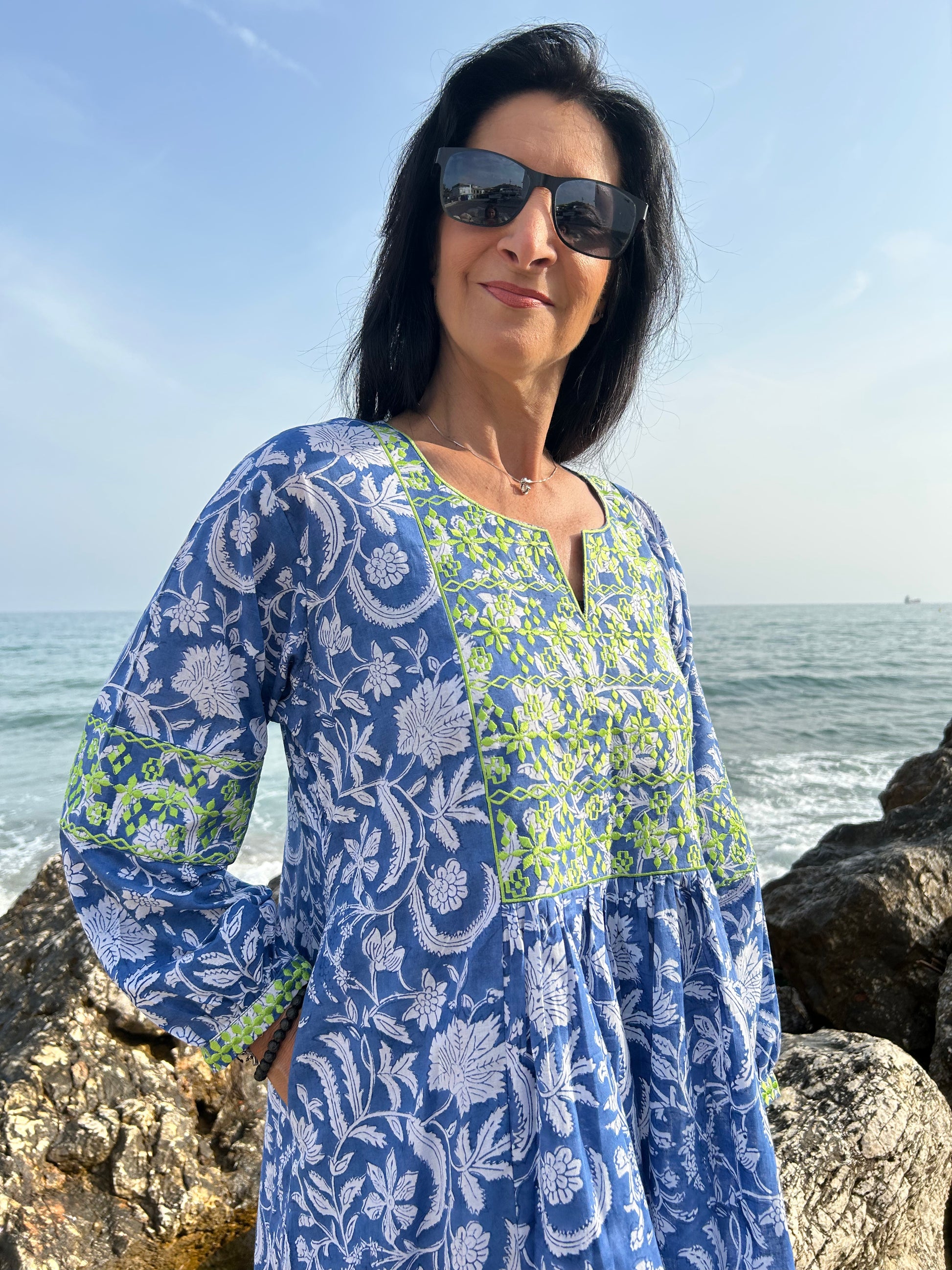 Blue floral Autumn embroidered dress